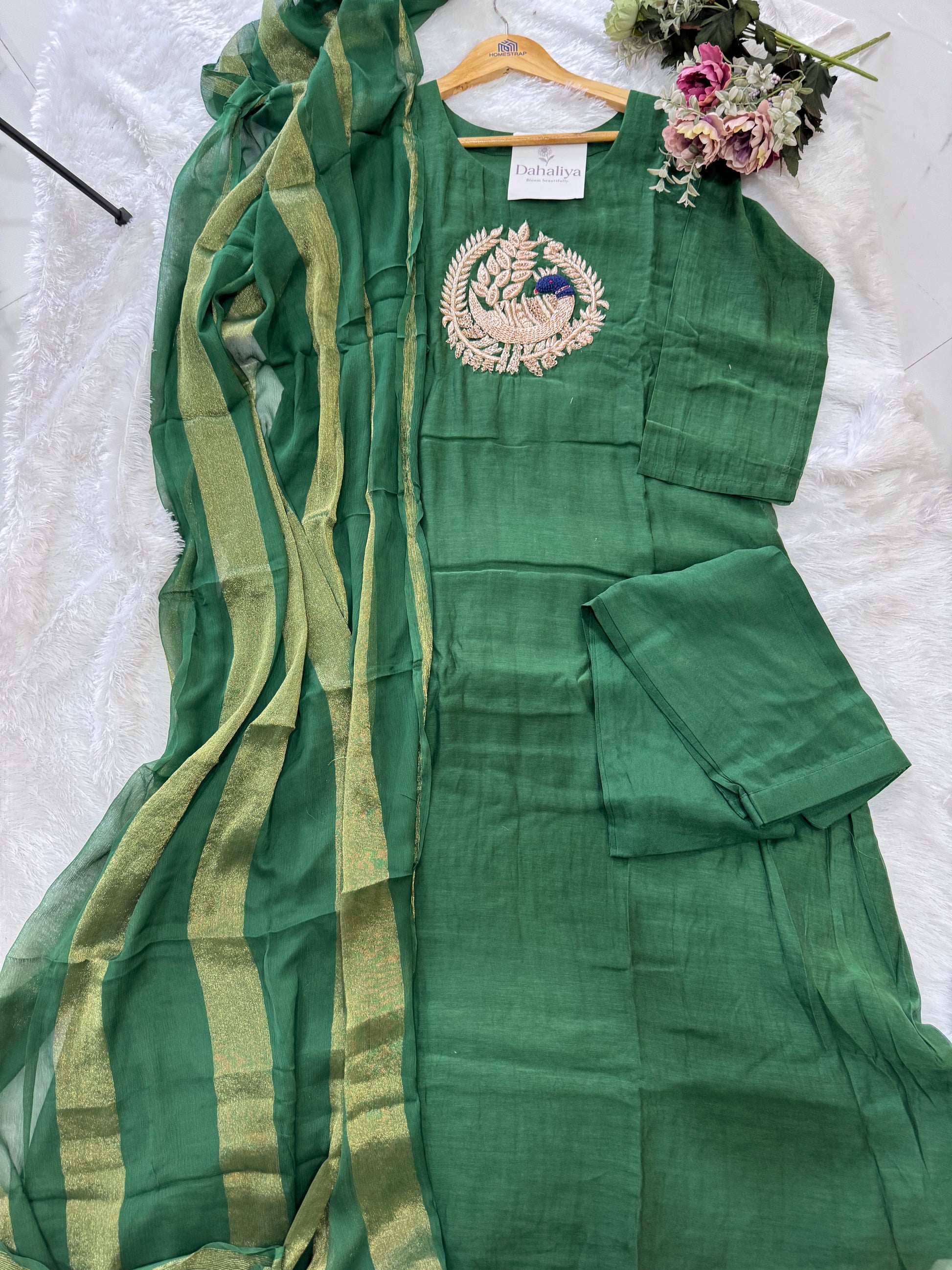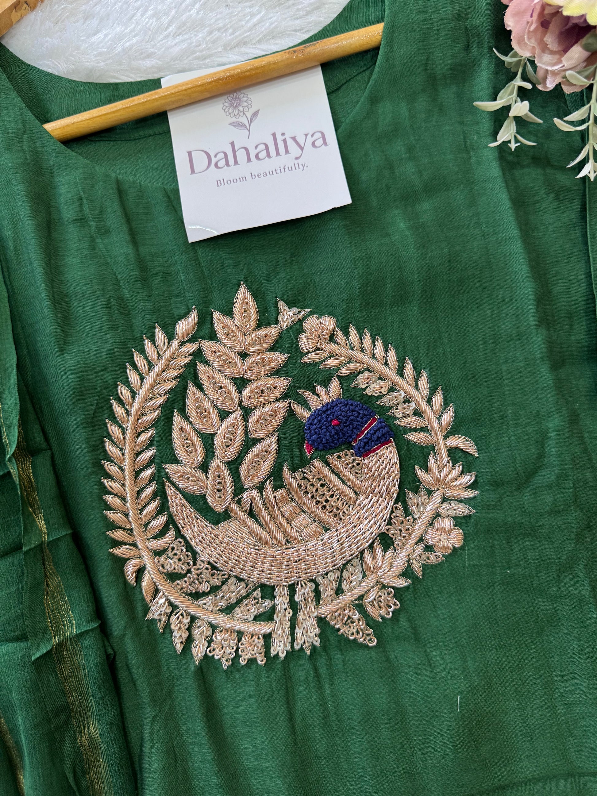 • Premium Mul Chanderi kurti with intricate zardosi handwork on the neckline and kurta