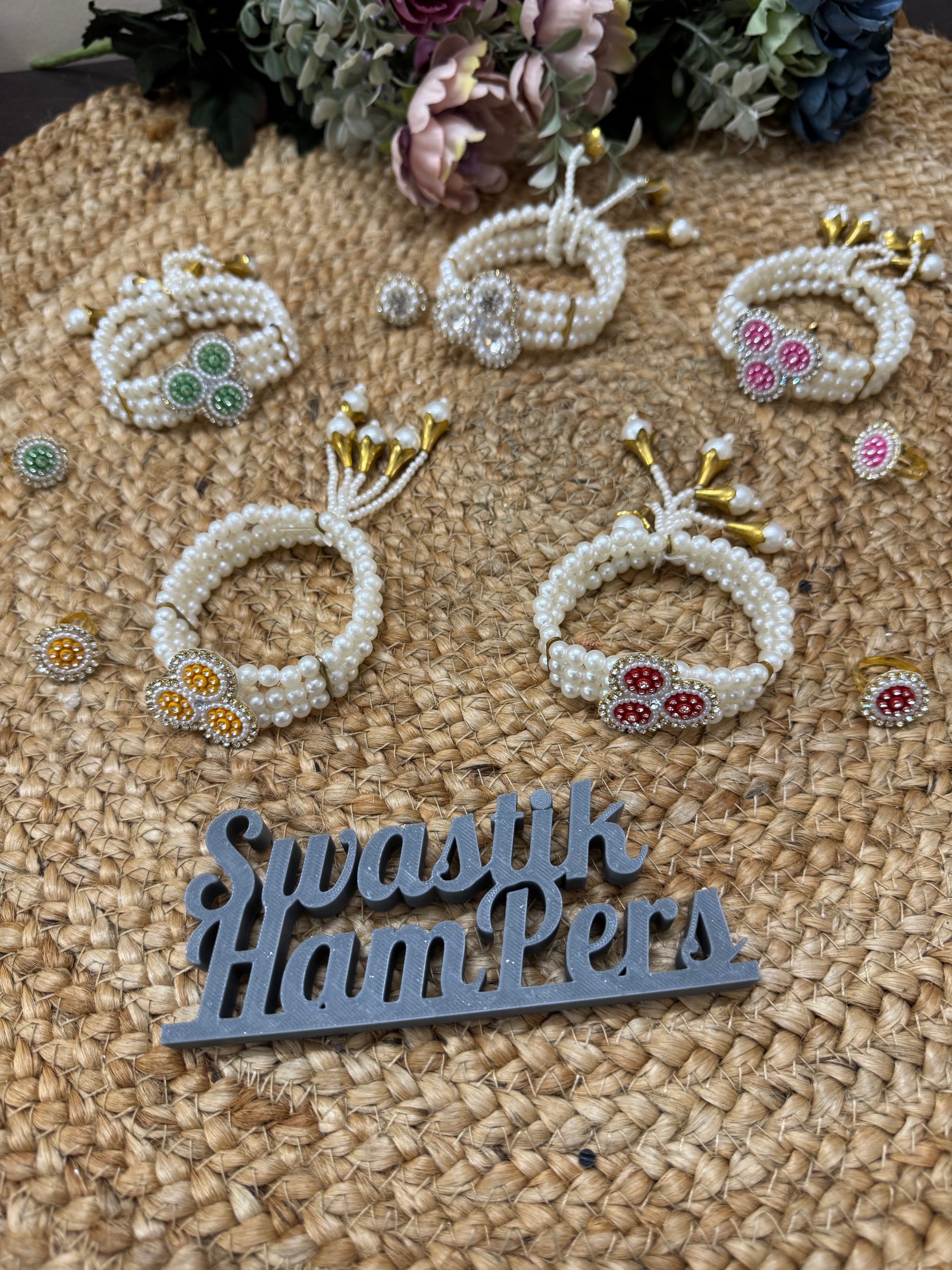 Pearl Bracelet & Ring Set – Wedding Haldi Mehendi Favour (Color Assorted)