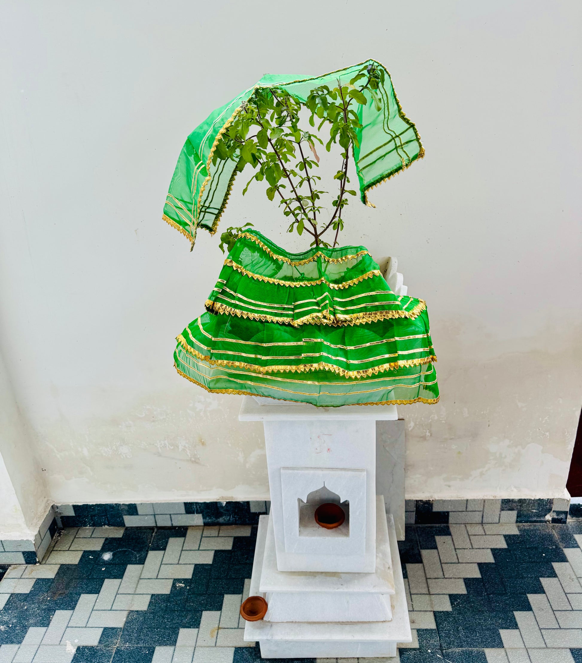 Bring devotion and elegance to your daily pooja, Tulsi vivah rituals with this beautifully crafted Tulsi Ji Poshak.